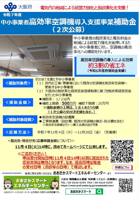 令和7年度中小事業者高効率空調機導入支援事業補助金(2次公募)